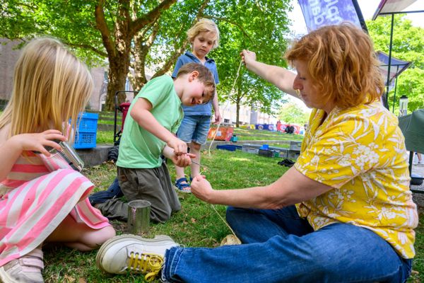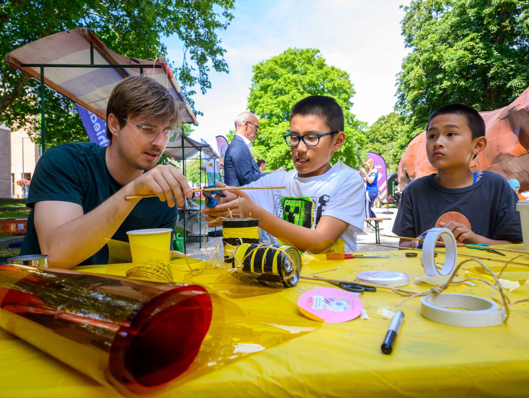In onze stand knutselden we met de kinderen heel wat vrolijke insectenhotels in elkaar. De workshop was ontzettend populair en binnen twee uur tijd waren alle blikjes al omgetoverd tot hotel! Later op de middag konden de volwassenen ook nog aan de slag met het maken van een bijenkroeg. Want we staan er niet zo snel bij stil, maar ook bijen en andere insecten hebben op warme dagen behoefte aan water. Met een bijenkroeg kun je ze hier een veilig plekje voor geven.