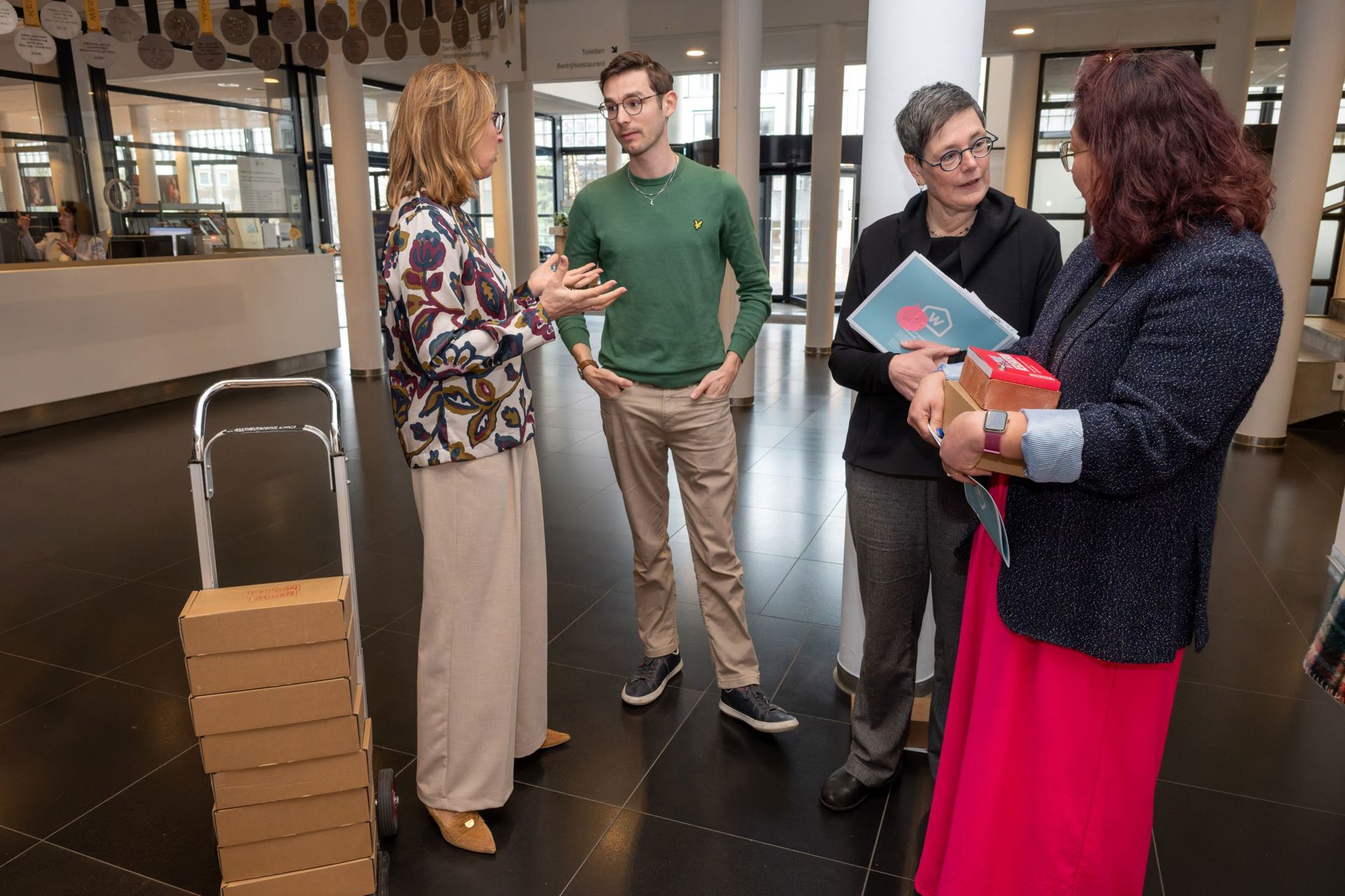 Vanmorgen, donderdag 2 april, ontvingen fractievoorzitters Sun van Dijk (Lijst 1), Elise Allart (Partij voor de Dieren) en Jort van der Voorden (D66) de zware beslisagenda uit handen van onze directeur-bestuurder Marieke Stam. Miranda de Koster en Kees van der Tuijn namen de agenda namens Catelijne de Groot (50Plus) in ontvangst. Hiermee hopen we het thema wonen tijdens de coalitieonderhandelingen en de jaren erna hoog op de agenda te zetten. De zware beslissingen waarom het in Schiedam draait, hebben we samengevat in een beknopte brochure met 9 aandachtspunten. Ook deze hebben we overhandigd.