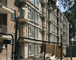 Het grootste deel van de balkons is al van het pand verdwenen. Aan de voorzijde maken ze plaats voor de nieuwe galerij. Aan de achterkant komen straks weer balkons terug. Maar dan helemaal nieuw én een stuk groter dan ze waren.