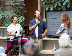 Cilia vroeg daarna naar het mooiste geschiedenisverhaal van Schiedam. Voor de jongste deelnemer Tim was dat een lastige vraag, maar de anderen deelden graag hun herinneringen. ‘Ik heb als kind in het Weeshuis gewoond. In de naaikamer werd de kleding vermaakt voor de volgende’, vertelt deelnemer Ton openhartig.