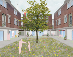 - …woningen grotendeels gericht zijn op de straatzijde. De binnenplaatsen bestaan uit parkeervakken en bergingen. Terwijl dit juist leuke ontmoetingsplekken zouden moeten zijn. Ook grenzen er vooral slaapkamers, badkamers en andere ‘gesloten’ ruimtes aan die binnenplaatsen.