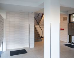 De toch al geplande verbouwingen van de flats in Groenoord – vanwege de aansluiting op het warmtenet – boden een mooie kans om de open entrees meteen mee te nemen in de werkzaamheden. Zo konden we de problemen in één klap verhelpen. Eerder dit jaar hebben we de brievenbussen die nog op de verdiepingen hingen naar de entrees verplaatst. De entrees zelf hebben we opgeknapt en afgesloten. Het resultaat: frisse, afgesloten entrees, met veel licht en flats die alleen nog toegankelijk zijn voor bewoners en hun bezoekers. Via een videobelpaneel onderaan de flats kunnen bewoners contact maken met de mensen die aanbellen.