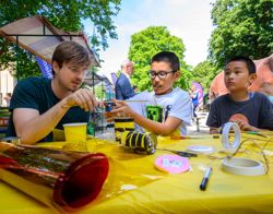 In onze stand knutselden we met de kinderen heel wat vrolijke insectenhotels in elkaar. De workshop was ontzettend populair en binnen twee uur tijd waren alle blikjes al omgetoverd tot hotel! Later op de middag konden de volwassenen ook nog aan de slag met het maken van een bijenkroeg. Want we staan er niet zo snel bij stil, maar ook bijen en andere insecten hebben op warme dagen behoefte aan water. Met een bijenkroeg kun je ze hier een veilig plekje voor geven.