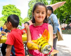 Hart voor Groen had de watertafel meegenomen. Kinderen en hun ouders konden hier ontdekken hoe we in Schiedam wateroverlast kunnen tegenaan. Zo werd het niet alleen een leuke maar ook een heel leerzame dag. We hebben veel tips kunnen geven en wie dat wilde kon ook onze tuin- of balkonfolder meenemen. Enkele collega's hielpen ook bij de druk bezochte stormbaan. Sommige kinderen waren er niet weg te slaan en zagen we steeds opnieuw voorbij komen. Wat een enthousiasme!