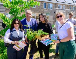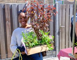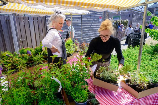 Om twee uur staat er al een aardige rij voor de plantenkraam die speciaal voor de gelegenheid is neergezet. De sfeer is vrolijk. Buren kletsen gemoedelijk met elkaar. Een kwartiertje later loopt buurtbewoonster Halima Groenendijk weg bij de kraam. In haar handen heeft ze een doos met onder andere zonnehoed, een rozenstruikje en lavendel, een zakje potgrond en een A4 met instructies over hoe ze het nieuwe groen moet planten en verzorgen. “We wonen hier heerlijk. Ons huis heeft zoveel ruimte! We vonden het alleen aan de voorkant van onze woning nogal saai en bloot”, verklaart ze haar inschrijving voor de geveltuintjes. Ze knikt naar de doos in haar handen: “Met deze plantjes wordt het hopelijk wat gezelliger. Of ik zelf ga planten? Nee, haha. Dat laat ik over aan mijn man, hij is degene met groene vingers bij ons thuis.”