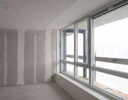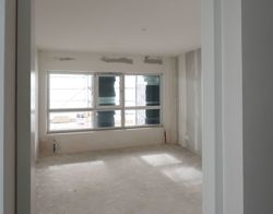 We pakken de flat aan 'per streng', zoals dat heet. Daarmee bedoelen we dat de woningen die we aanpakken boven elkaar liggen. We werken daarbij steeds van boven naar beneden. We zijn aan de linkerkant van het gebouw gestart en schuiven steeds verder op naar rechts.