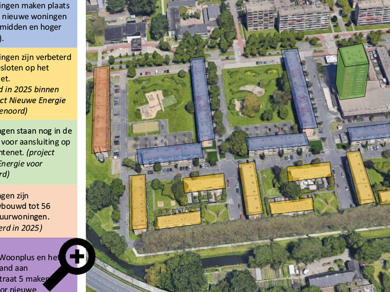 De blauwe woningen maken plaats voor circa 290 nieuwe woningen. Daarvan worden de sociale huur- en middenhuurwoningen (totaal ca. 165) weer van Woonplus. Gebiedsontwikkelaar AM verzorgt de verdere uitwerking en realisatie van het hele plan. Hiervoor hebben we in december 2025 de samenwerkingsovereenkomst getekend.